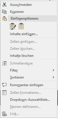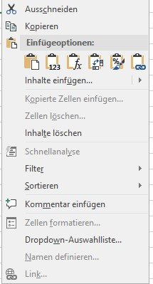 Alternativ können Sie die Daten auch per Rechtsklick einfügen: