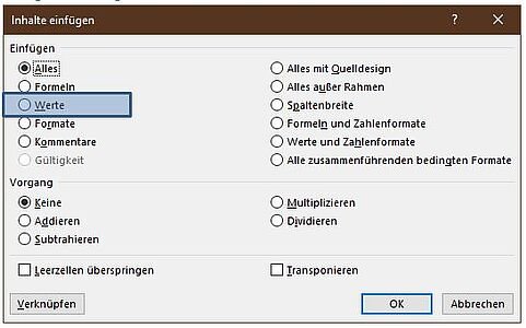 Bitte wählen Sie hier: Werte einfügen