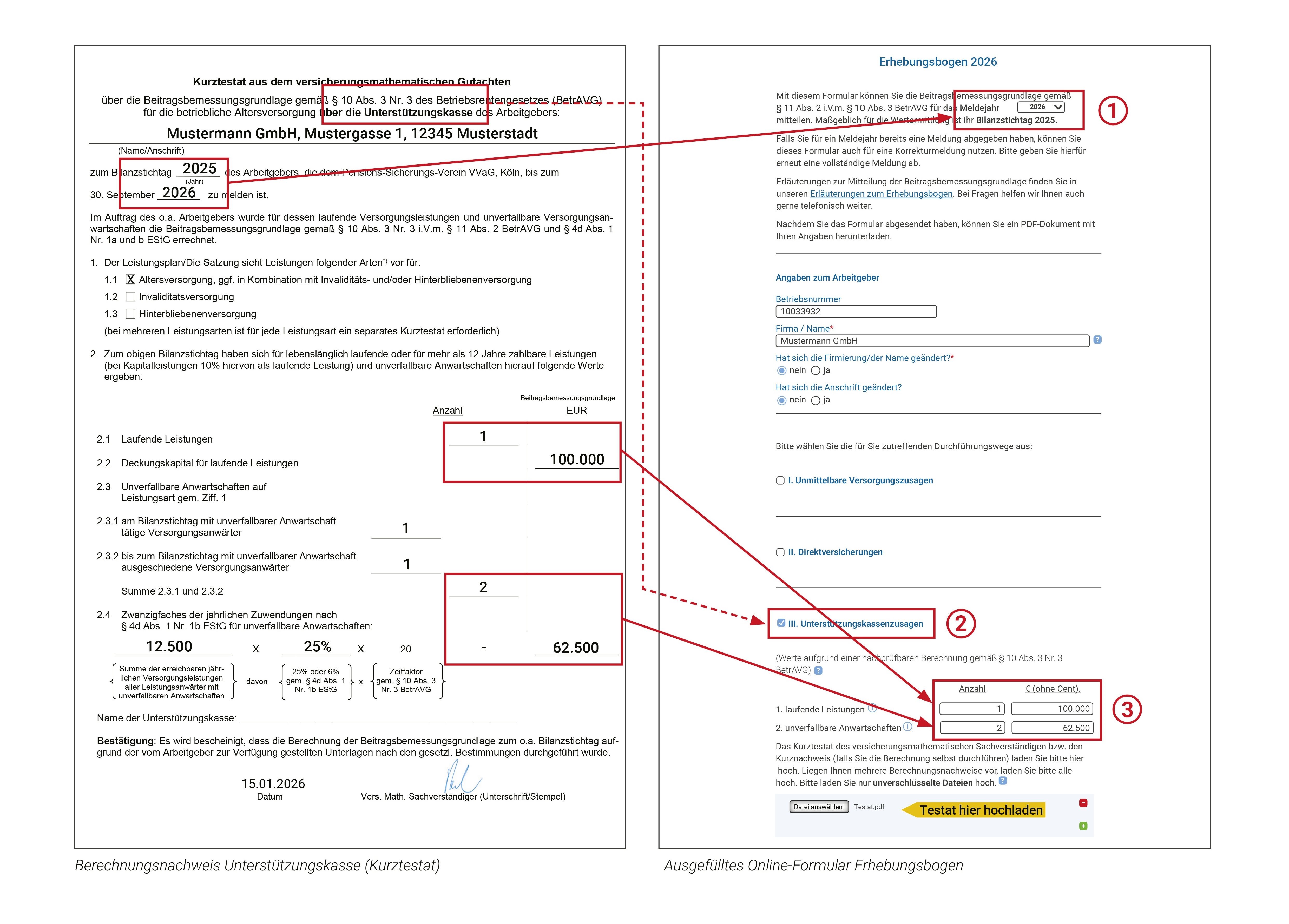 Ein melde- und beitragspflichtiger Arbeitgeber hat dem PSVaG spätestens bis zum 30. September eines jeden Kalenderjahres die Höhe des für die Bemessung des Beitrages maßgebenden Betrages (Beitragsbemessungsgrundlage) mitzuteilen. Das gesetzlich vorgeschriebene Stichtagsprinzip sieht dabei für das jeweilige Meldejahr die Wertermittlung zum Schluss des Wirtschaftsjahres des Arbeitgebers vor, das im abgelaufenen Kalenderjahr geendet hat.